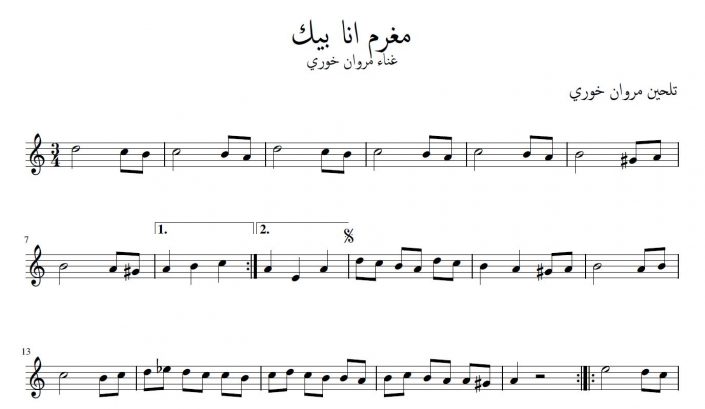 نوتة مغرم انا بيك مروان خوري تنزيل مجاني