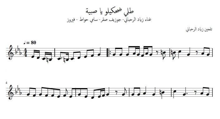 نوتة و كلمات طلي اضحكيلو يا صبية تنزيل مجاني