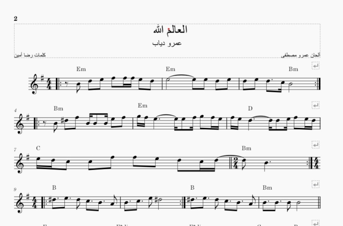 تنزيل نوتات العالم الله مع الكوردات- عمرو دياب